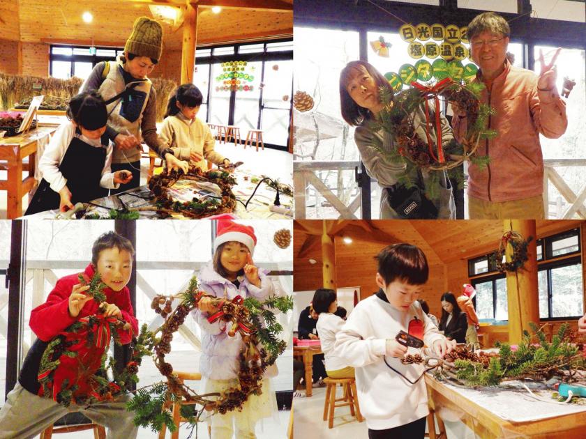 ドングリ、クルミなどの身近な木の実や、深山に育つ木の実など、さまざまな素材を使って世界にひとつだけのクリスマスリースを制作します。