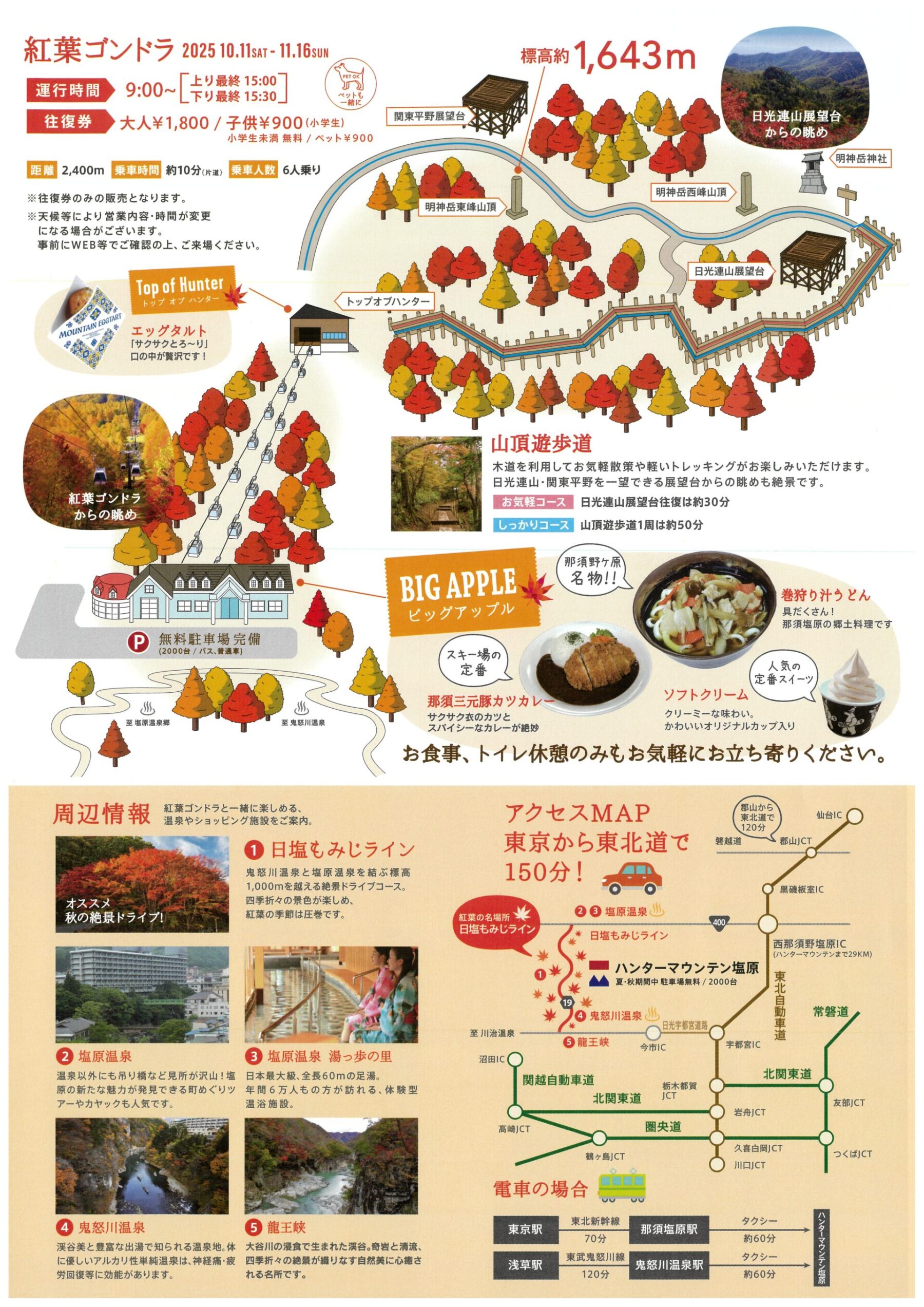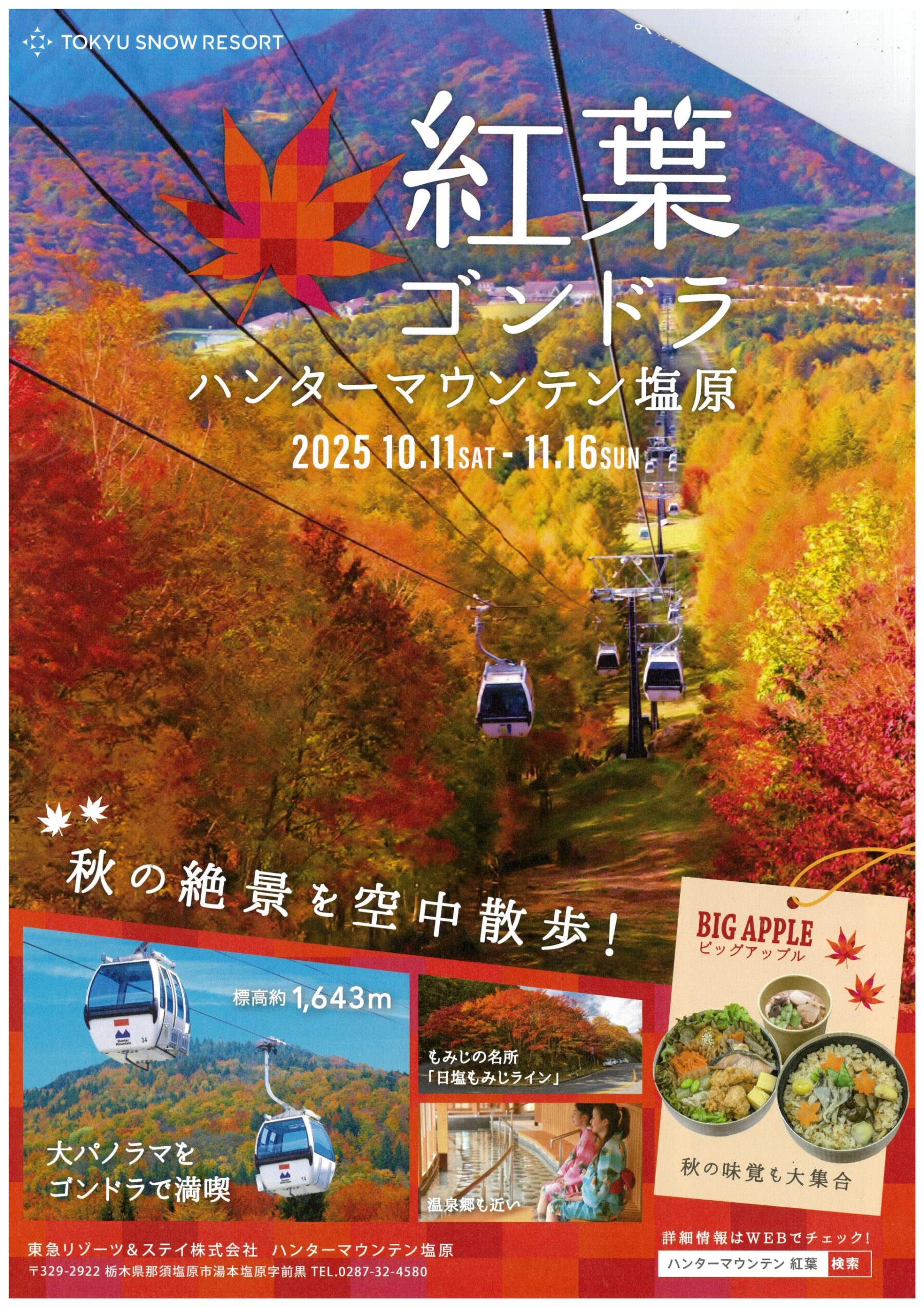 - 10月11日(土)~11月16日(日) 紅葉ゴンドラ in ハンターマウンテン塩原