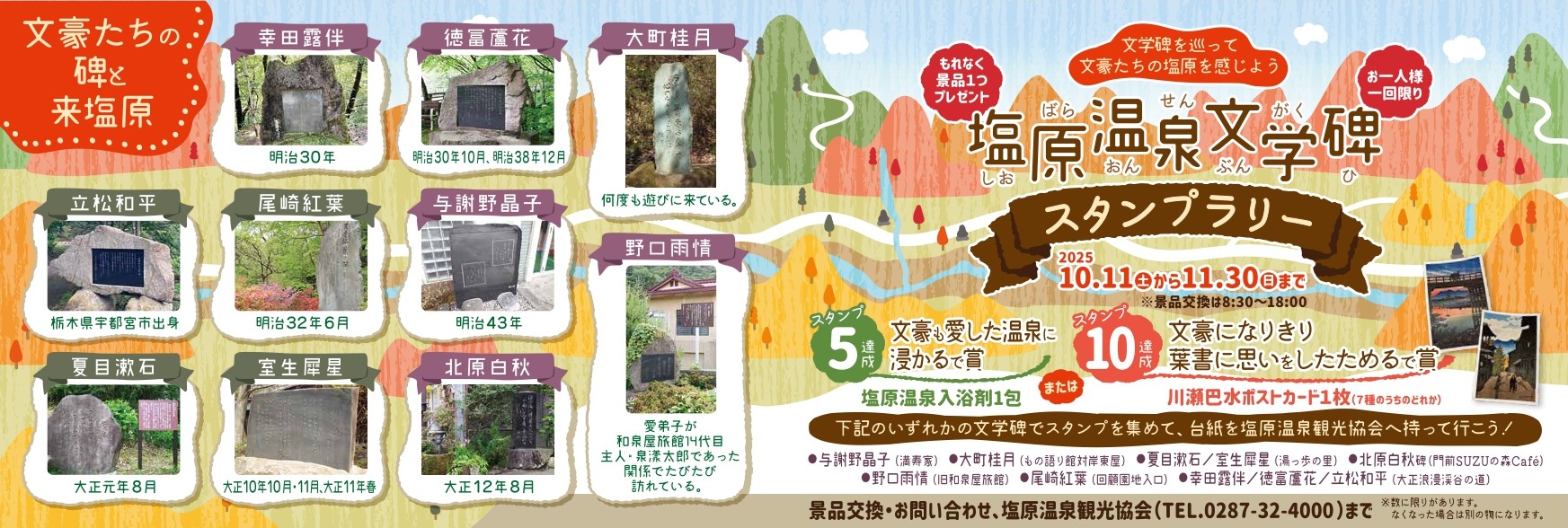 - 10月11日(土)~11月30日(日) 塩原温泉文学碑スタンプラリー°˖✧