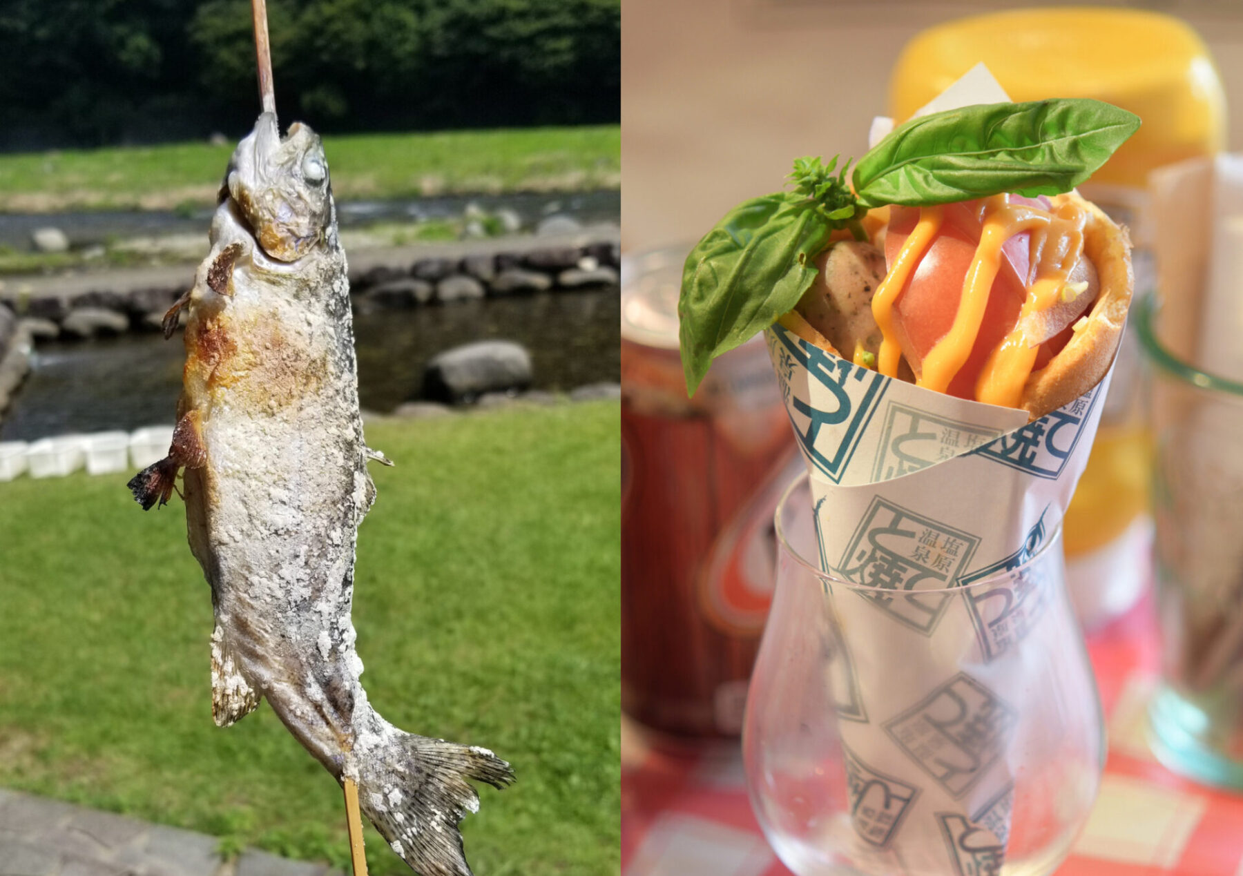 塩原漁業組合さんのマスの塩焼きや、塩原グルメとて焼。その他キッチンカーの出店や、ワークショップ等体験型のブースもございます!