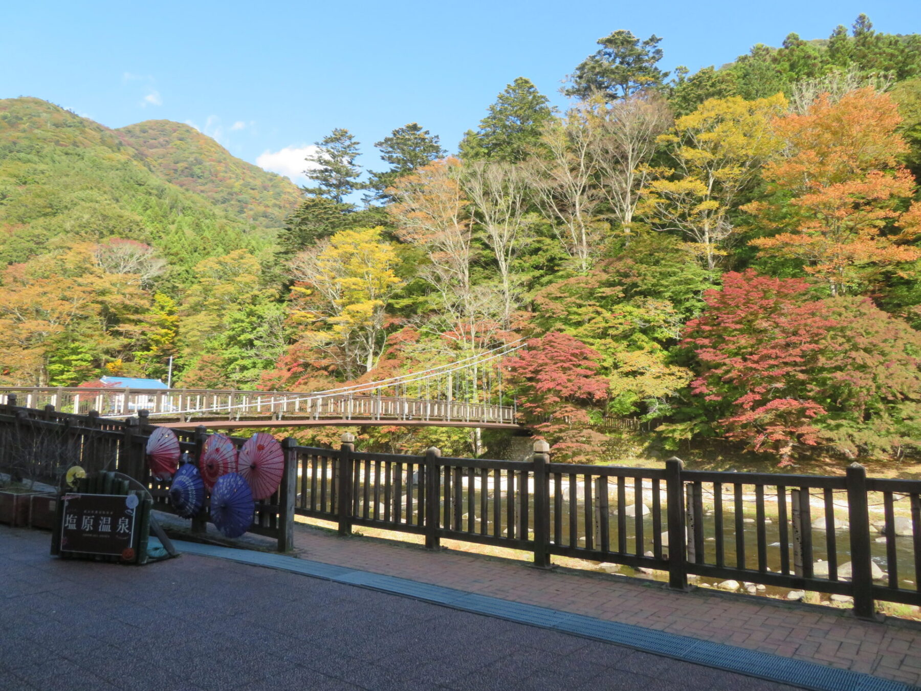 「紅の吊橋」(温泉街の中心部)を中心に、現在の紅葉状況をお知らせいたします。