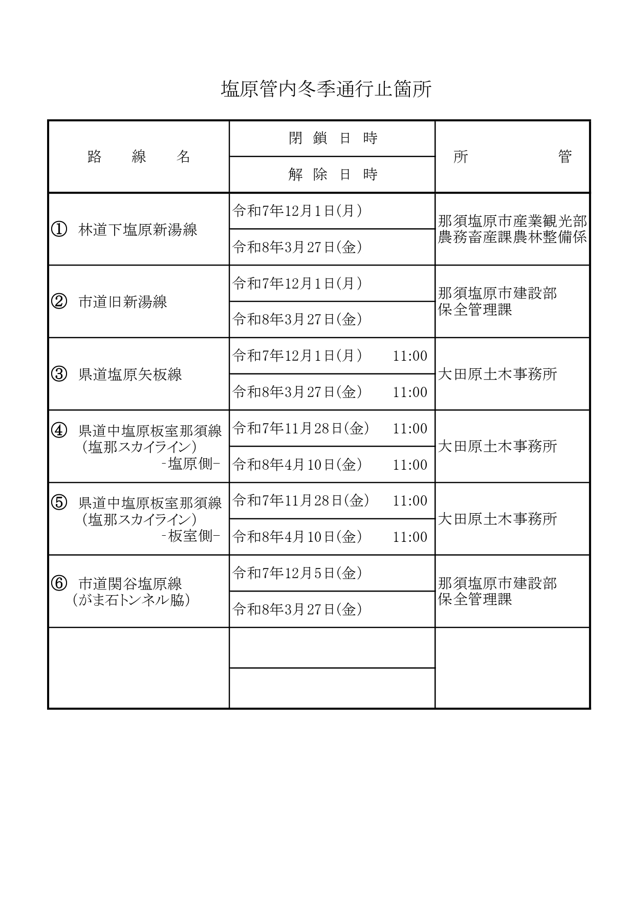◆日塩もみじライン(ハンターマウンテン周辺)、上三依、会津田島方面は路上積雪の可能性がございます。ご注意下さい。