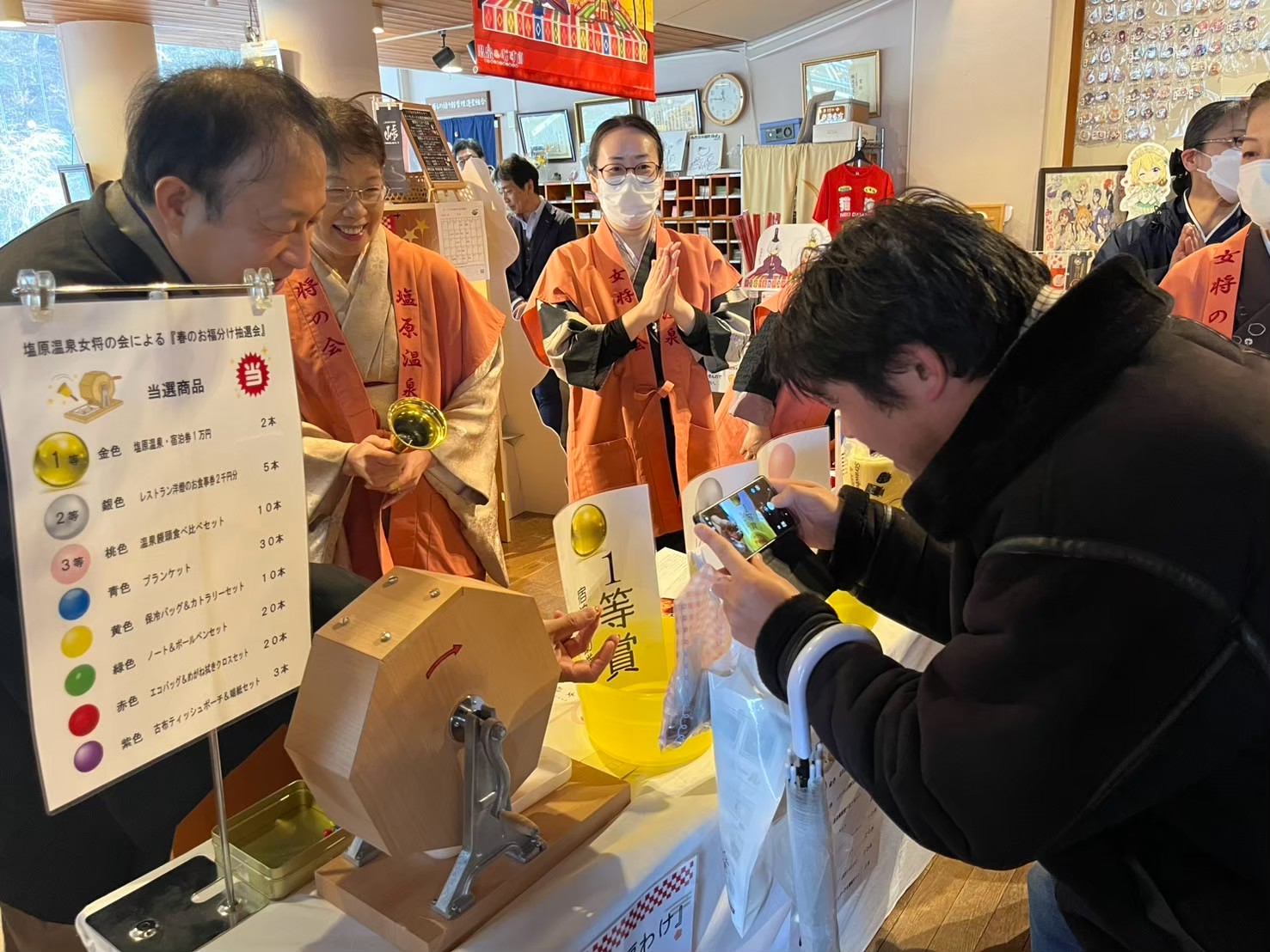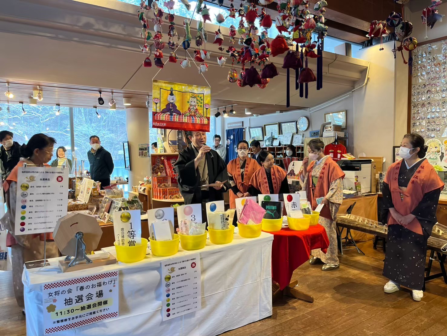 フィナーレイベント「お福分け抽選会」!昨年は雪が降っていたので、館内で行いました。