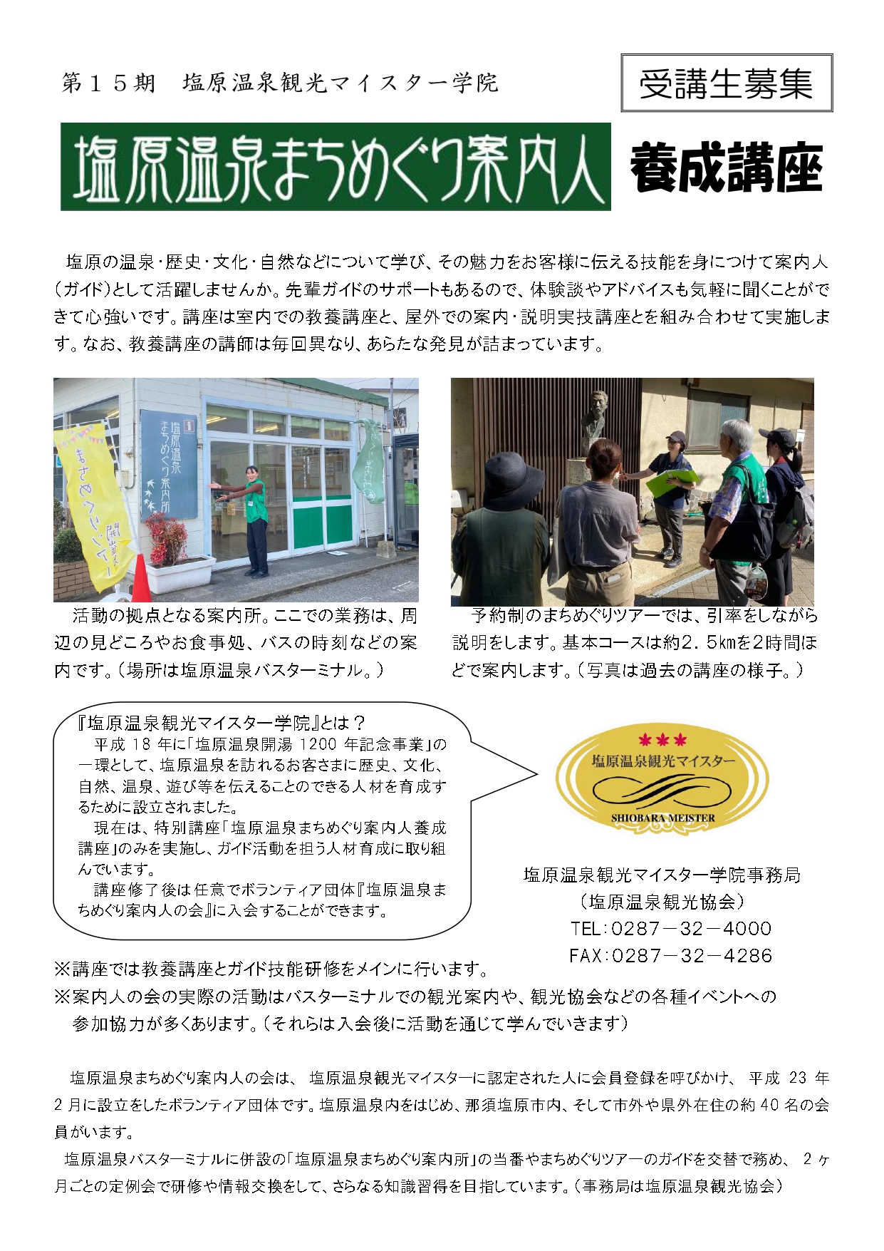 塩原の温泉・歴史・文化・自然などについて学び、その魅力をお客様に伝える技能を身につけて案内人として活躍しませんか?